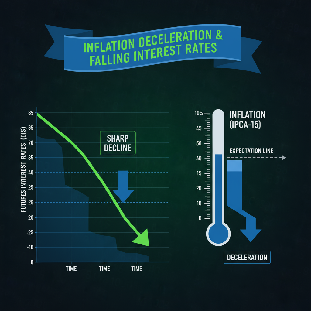 - O que isso muda nos seus investimentos? Favorece a Renda Fixa Pré-Fixada, que ganha valor quando a inflação esperada cai. Beneficia ações de construtoras e varejistas, que se beneficiam de juros menores.