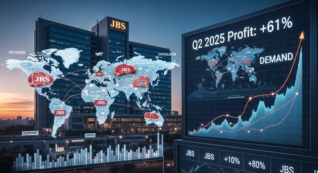 A JBS (JBSS3), gigante global do setor de alimentos, reportou um forte crescimento em seus resultados financeiros. O lucro líquido da companhia saltou 61% no segundo trimestre de 2025 (2T25), atingindo US$ 528 milhões. O resultado superou as expectativas do mercado e é reflexo da forte demanda global por carne e da eficiência operacional da empresa.
