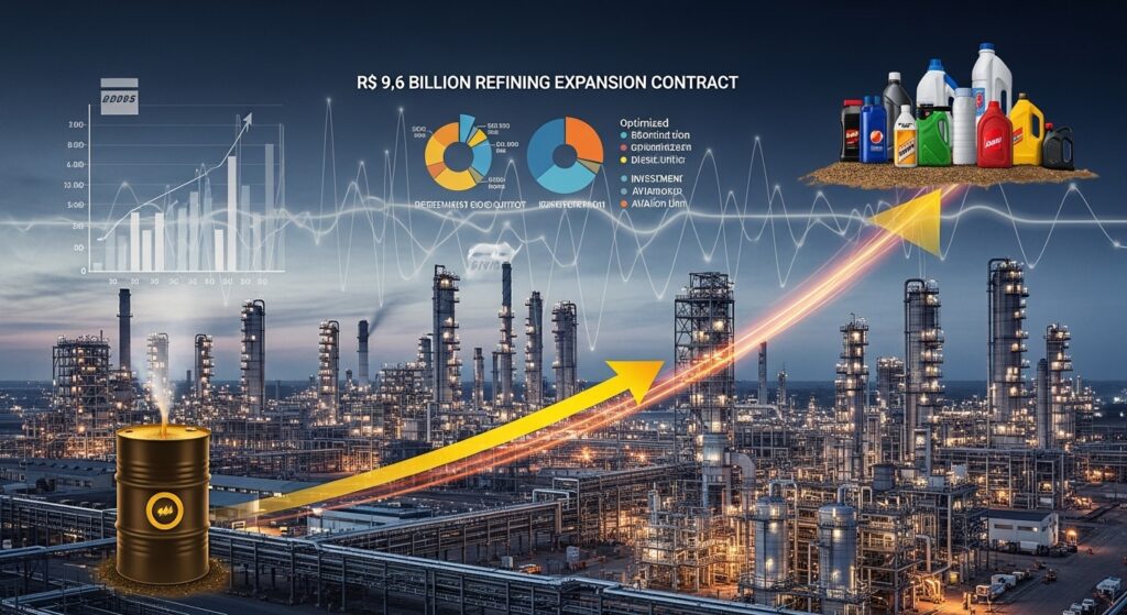 A Petrobras (PETR4) avança em sua agenda de investimentos estratégicos. A estatal assinou um contrato de R$ 9,6 bilhões com a empresa chinesa Sinopec para a expansão da capacidade de refino em seu complexo industrial no Rio de Janeiro. O anúncio reforça o plano da companhia de se tornar mais autossuficiente na produção de derivados.