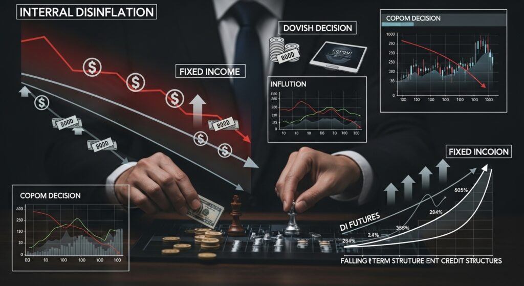 - O que isso muda nos seus investimentos? Favorece a Renda Fixa Pré-Fixada e FIIs. Sugere que o investidor busque ativos que se valorizam com a queda dos juros (marcação a mercado).