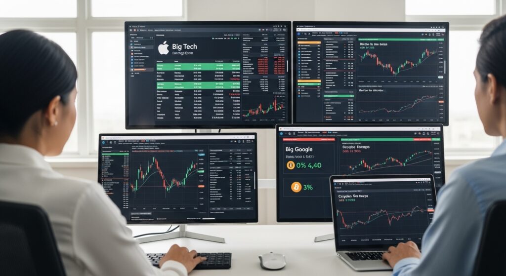 Temporada de Balanços no Foco: Lucros de Big Techs Sustentam Otimismo, Enquanto Dólar Forte Pressiona Criptomoedas